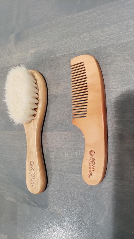 . Gently grooms babys hair Baby Brush Comb gently grooms babys growing hair with all-natural renewable wood and goat hair bristles. Green sprouts baby hair brush and comb is for adult-use only. Baby Brush Comb gently grooms babys growing hair with all-natural renewable wood and goat hair bristles.